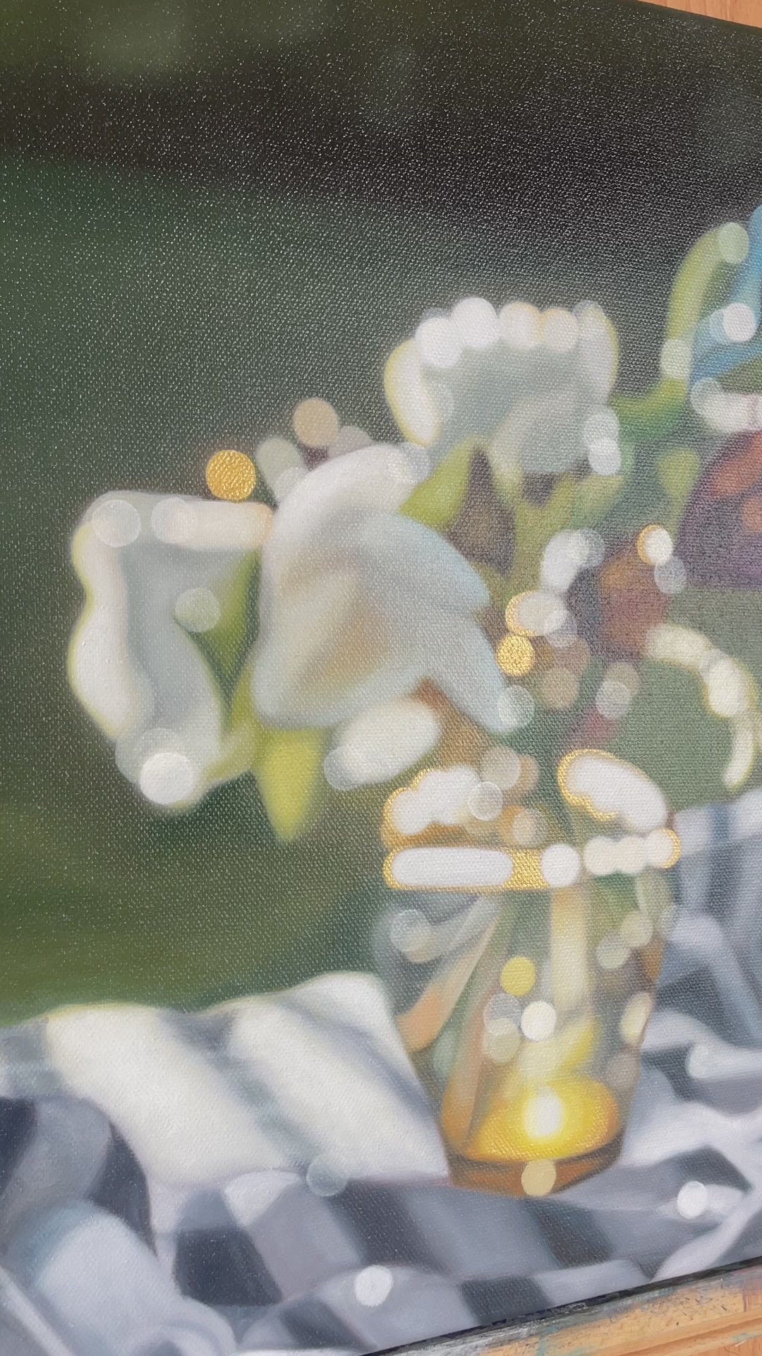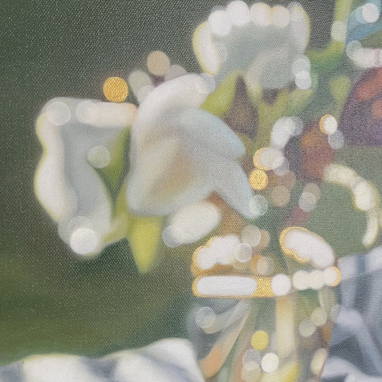 A floral still life, transformed through the dreamy softness of Mel's signature blurry bokeh style. Shine Through brings together a timeless subject matter and modern, light-filled abstraction to create a piece that feels both nostalgic and unexpectedly contemporary.